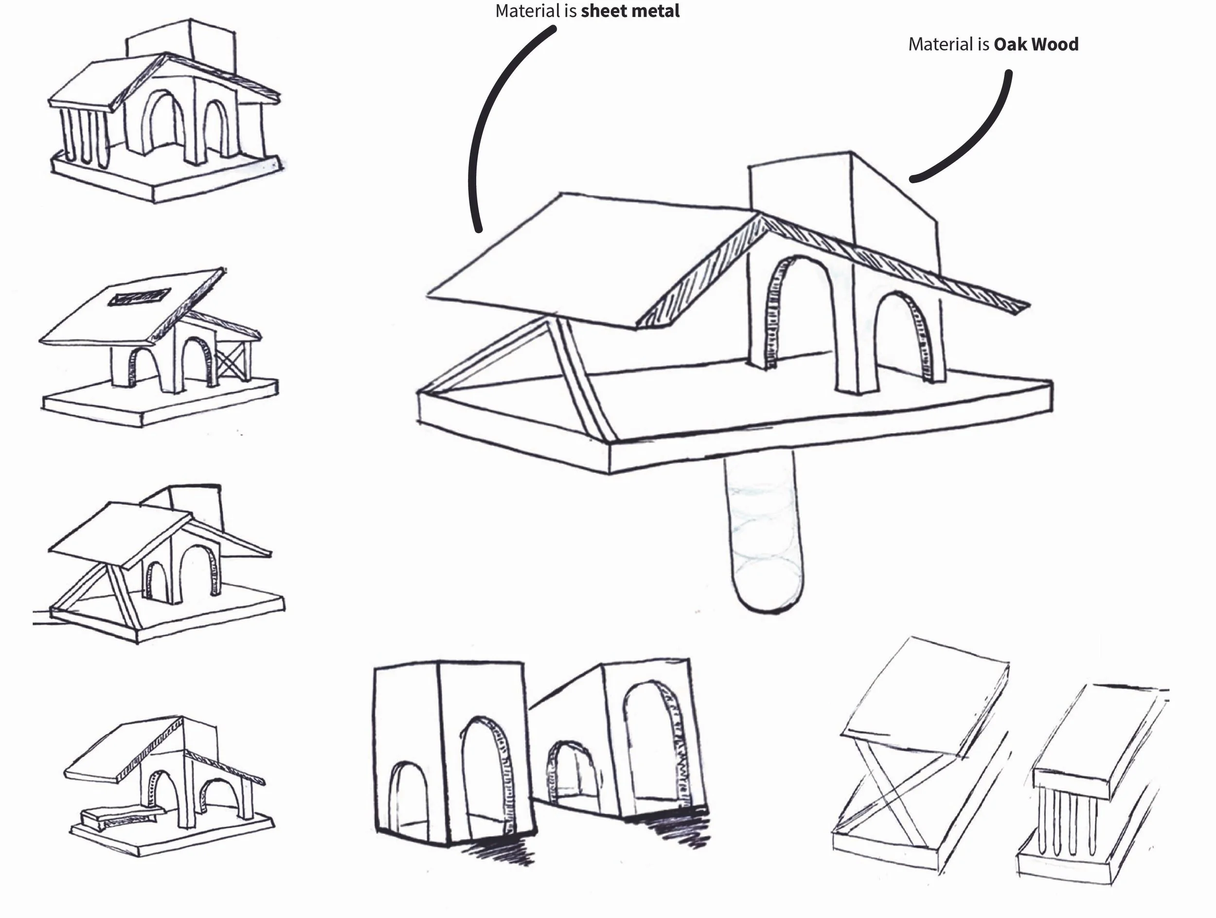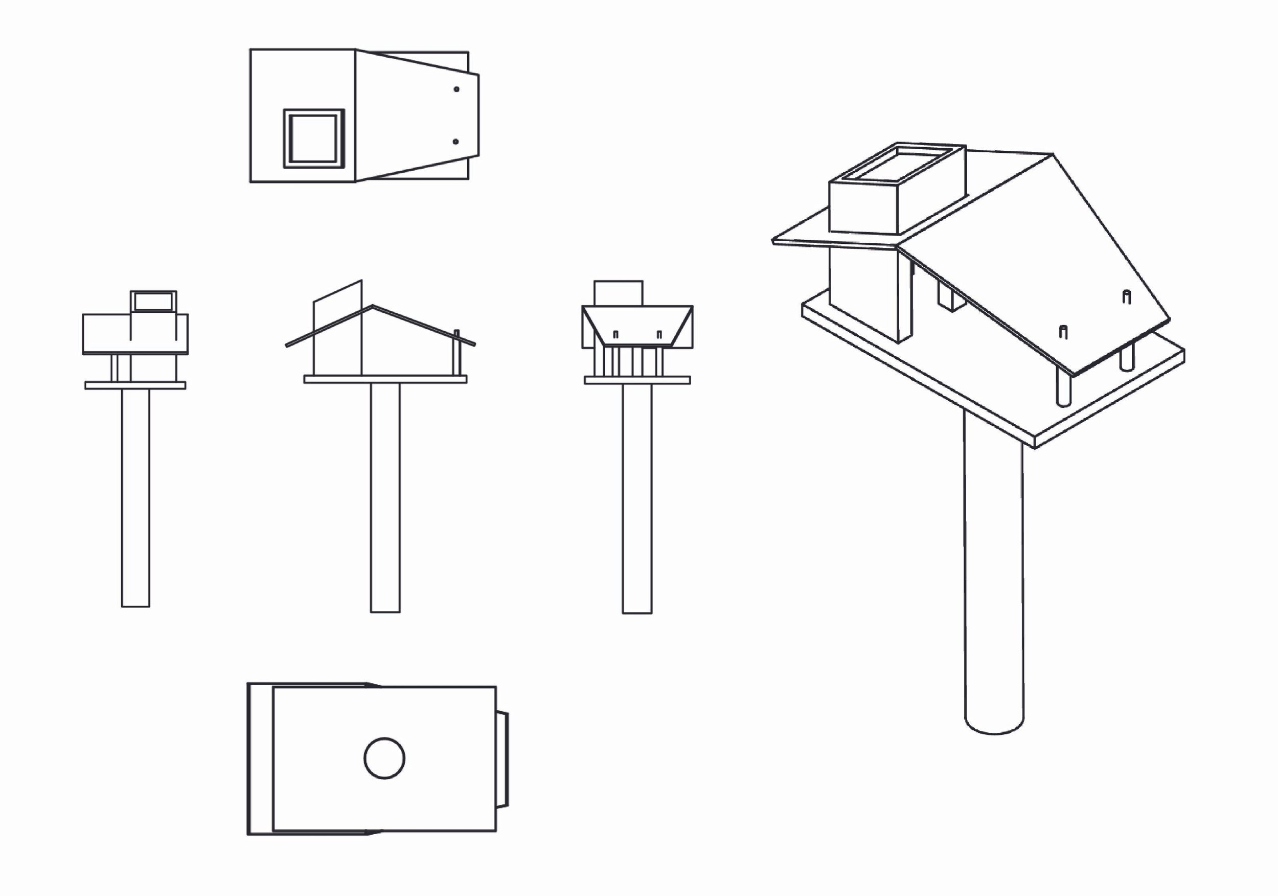 This form study translates key anatomical features of the cardinal into architectural geometry. The upward crest, angular beak, layered feathers, and grounded stance informed the rooflines, openings, and structural supports. These decisions were refined through orthographic drawings and CAD modeling, establishing a clear connection between natural reference and constructed form.